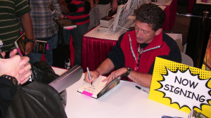 The video below shows the book signing by Micky Neilson — HD1080 available. Let the playlist run to load both videos. The sound is a bit chaotic. I cleaned a bit of it, but you can still hear it. There was a nearby booth with really amped-up music in the background on top of the thousands of people talking in the distance.