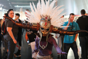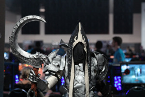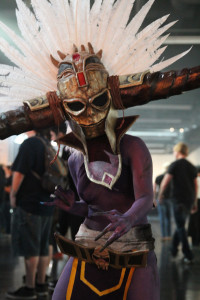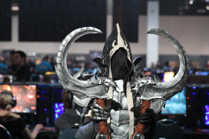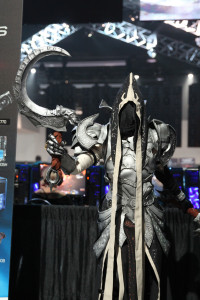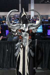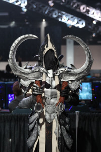 Another round of great cosplayers with Blizzard QA II Cynthia Hall as Malthael, and fans disguised as Imperious, Tyrael, Jaina, Witch Doctor, Draenei, High Inquisitor Whitemane, a Mist Creeper, a female orc and a female elf. Even a dog cosplayed dressing up as a BlizzCon 2008 Big Blizzard Bear mount. More Cosplay over at Day One photos.