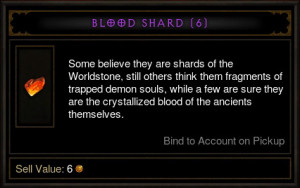 In Adventure Mode, the Inventory displays two currency options: Gold and Bloodshards. The Bloodshards can be used to buy from Lorath Nahr (the Horadrim disciple) or from Kadala. Both of these Horadrim stand next to Tyrael in the main camp.